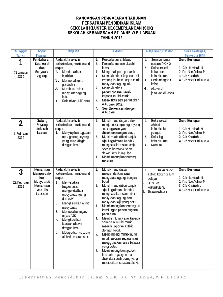 Rancangan Tahunan Persatuan Agama Islam Docx Rancangan Tahunan Persatuan Agama Islam Sk Seri Padang Sari Batu Pahat Bulan Aktiviti Januari Mesyuarat Course Hero